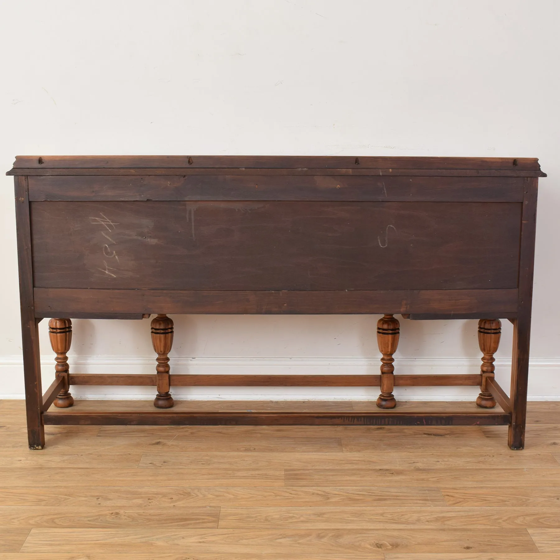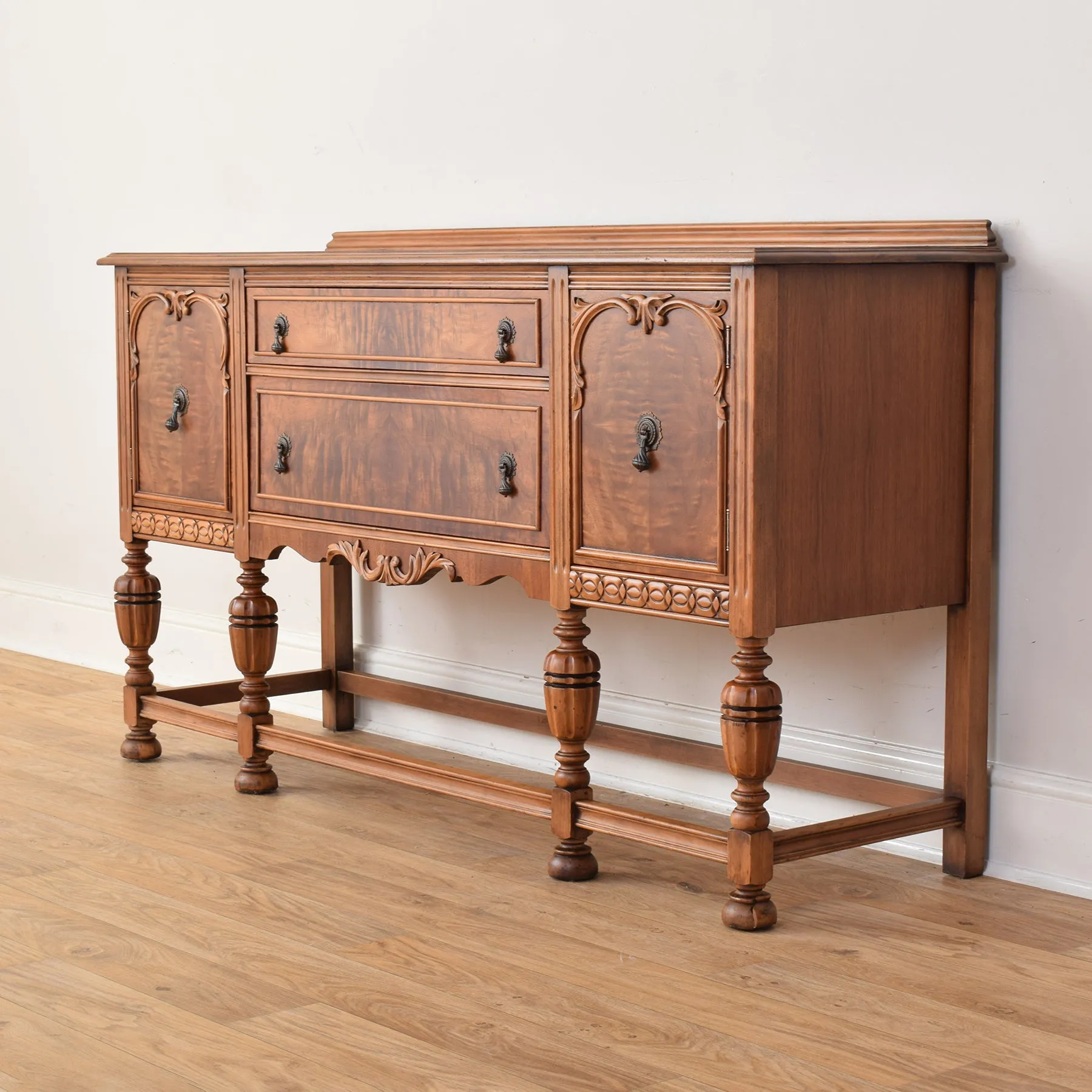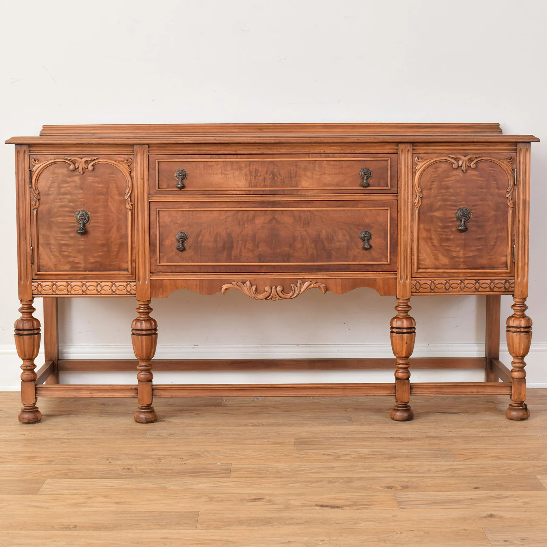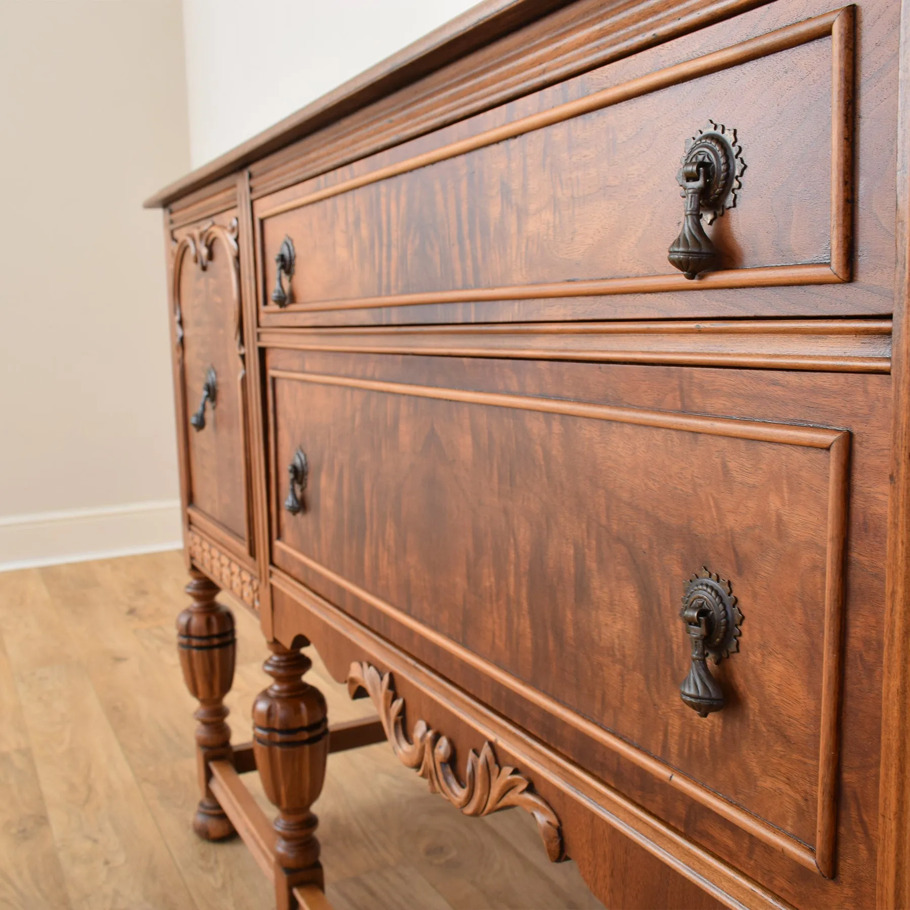 This antique mahogany sideboard has been carefully restored and reimagined as a striking bathroom vanity unit. Its balanced proportions, rich tones and detailed craftsmanship make it a true centrepiece, bringing warmth and character into the space.